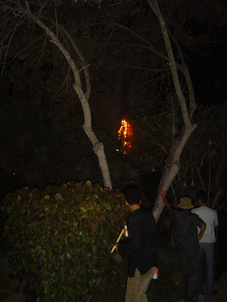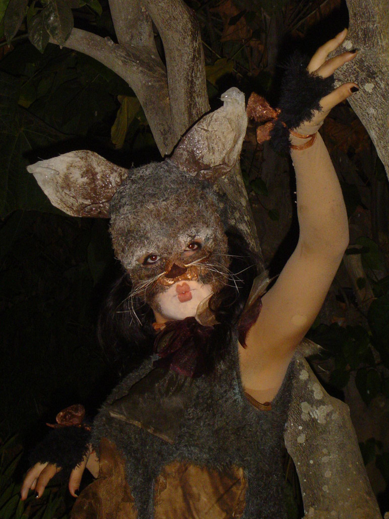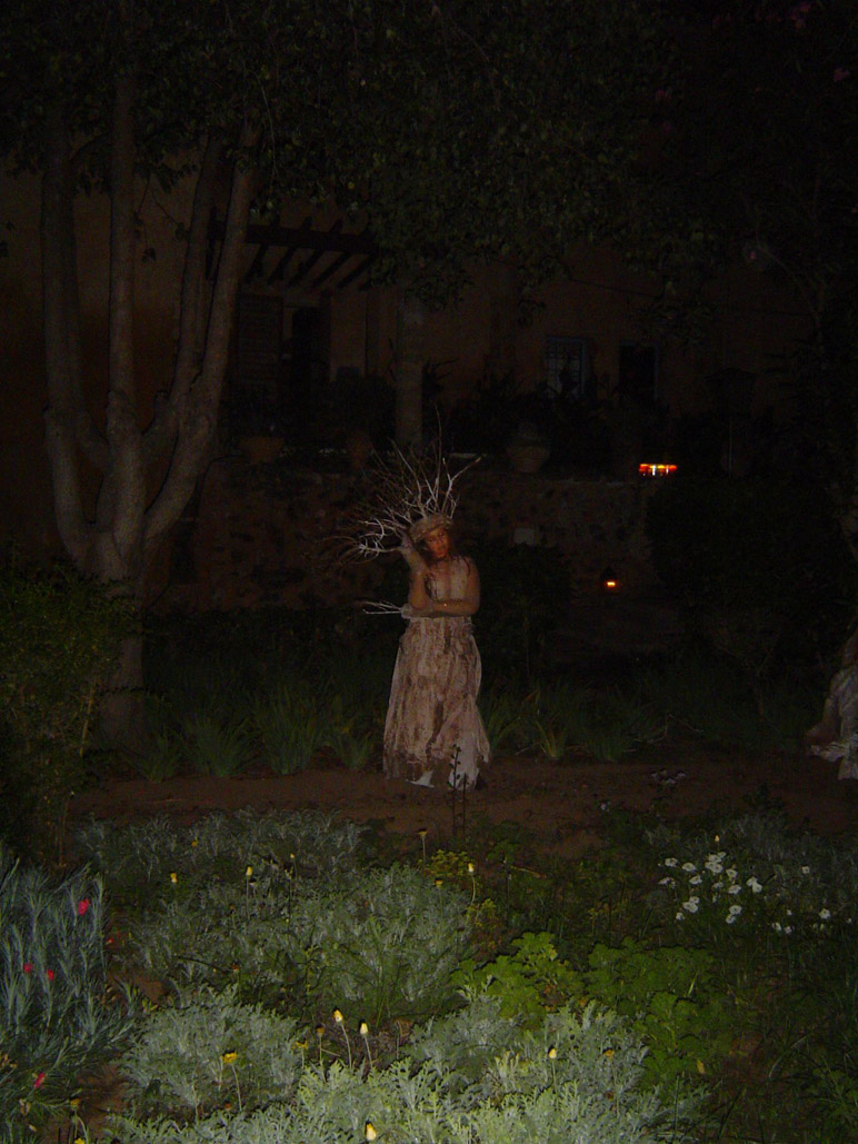 The students of the Academy of Dramatic Arts in Rabat transform into animated installations and creatures (djinns) belonging to the Arabic mythology, placed between human being and animal, between heaven and earth. In a guided circuit the visitors become stealthy observers of the night-life between trees and bushes in the Arabic garden in the Oudayas in Rabat. The circuit becomes in this way a poetical journey with surprising interactions between the djinns and the visitors.