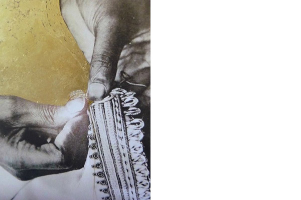 In den Bildern von Ulrike Weiss treten Details in den Mittelpunkt, die das Spannungsverhältnis von Arbeit, sozialem Alltag und dem Versprechen nach einer besseren Zukunft gegenwärtig machen. Das weit vergrößerte Detail von Händen, die an der Stickerei eines festlichen Stoffes arbeiten, der sich in strahlendem Weiß von dem goldenen Hintergrund absetzt, verleiht der Arbeit etwas erhabenes, während die dunklen, von der Zeit gezeichneten Hände zugleich ein Bild von den Mühen und Härten dieser Arbeit vermitteln.
